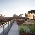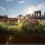 The design of the Dock Street Rooftop Terrace capitalizes on the spectacular panoramic views of the Brooklyn Bridge, Manhattan Bridge, East River and Manhattan Skyline. Field Operations created a “meadow in the sky’, carving out a series of distinct “rooms” and environments oriented towards each of the unique vistas. The garden serves the residents of the building, providing a communal space for outdoor living, lounging, dining, relaxing and entertaining.