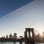 A mirrored cube transforms an existing egress stair into a focal point, creating a continuous horizon that reflects the expansive views and provides a shaded area for sitting, dining and entertaining. The design also features a series of custom alcove benches that face Downtown Brooklyn to the south, a long linear water feature that captures impressive views of the East River to the north where visitors can cool their feet on a hot day, and a large wood deck and trellis that frame intimate views of the Brooklyn Bridge and lower Manhattan to the west. A central dining area is surrounded by a tall meadow composed of various grasses and perennials such as Korean Feather Reed Grass, Moor Grass, Coneflowers, Yarrows, and Calamint.