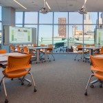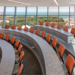 The new “Vertical Campus” is composed of connecting neighborhoods of Student Services, Student Union, academic and student residential environments, which emphasize the “out of class” spaces vital to a University atmosphere. The building form expresses these spaces and represents the transformational nature of the university experience. The grandeur of the classrooms and assembly spaces, with their area and height that connect to views of the City and Burnham Park, create a vertical urban sense of place not typical of tall buildings.