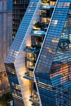 Not only representative of a special element of Thai culture, the compelling sloping form derives from Bangkok’s setback guidelines. Opportunities for terraces, shrinking floorplates, and unique, occupiable spaces are created as the building rises. Structural transfers and member sizes are minimized through an innovative structural solution that employs diagonal columns at the sloping façade.