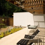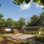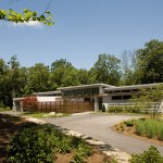 A two story LEED house built on a sloping site. Triple south facing glazing, foam insulation, and solar panels combine to make this an energy efficient home.