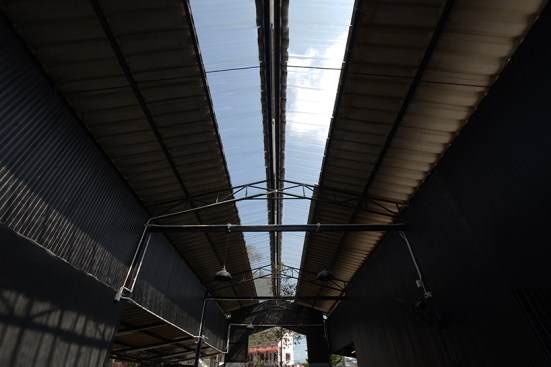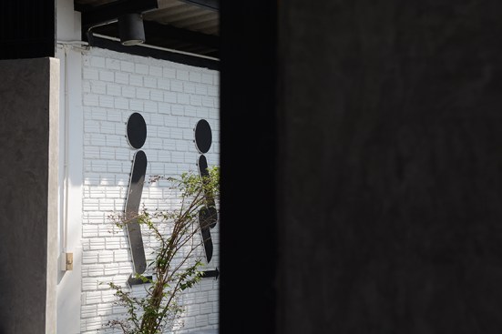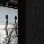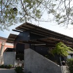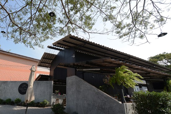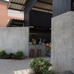 The objective of ‘Roti de Forest’ project is to change abandoned area by renovated car inspection center to new Roti restaurant into useful and valuable area, and to present modern Malay Muslim culture, as mentioned earlier. Therefore, the restaurant was built with modern architecture and design, resulting in well-ventilated and more comfortable.The main concept is a contrast using of colors and materials between interior and exterior.The building used gray-black tone to present a modern style.The original main structures was painted black to show original form and look new. White electronic pipe was used to contrast with structure and main interior color tone. Electric lamp was under original roof truss in middle building and original roof beam orderly. Due to this site had only one entrance and exit from next to the road, the bare cement walls in front of the main building were built with diagonal direction, which guide the customer to the restaurant from both side in front. On the right hand of entrance designed to be an oblique fence which contrast with the oblique roof shape of the building on background. And the left hand side was original fence that is attached to house in next that parallel to the building. Therefore designed to make the oblique intersect with the building to bring the eyes to connect into the building part. And installed this restaurant’s logo in a circle to metaphor Roti’s shape contrasting across all square elements of building in this site. This wall link to bar inside the building which can show Roti’s making process in front. The both wall look continuously but it was omitted to give prominently a large tree in front.