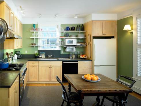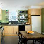 The design of this kitchen dates back to 1998, when the 2000 sq foot Greek Revival house was built. As time passed, more kitchen space was required because the homeowners wanted a larger dining area with built-ins for books and a television. A 40 square foot addition allows for more room for the table and a small sitting area.