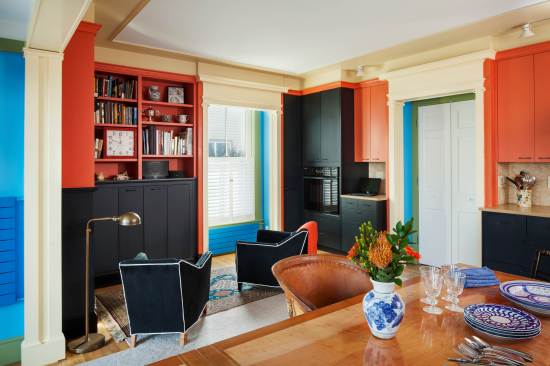 This project deserves an award for architectural interiors because the new bays and intense colors create spacial complexity with minimal additional space and expense.