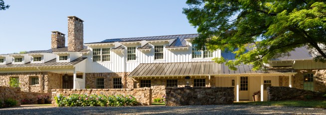 A cul-de-sac awaits 4 homes, requiring the barn’s demolition is cascaded for the second option: a new access to the site on the opposite and of the property redirected orientation away from cul-de-sac and a new home constructed. a home oriented and designed with the barn as focal and as generator for the design with major views to the barn structure. The house new mass was broken and lowered to remain secondary to the monolithic barn structure. Field stone and board and batten were selected for the home as sympathetic materials. Wooden members found inside the barn are used sparingly as elements in the home.