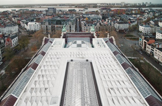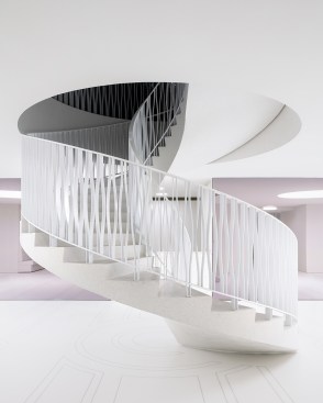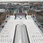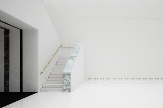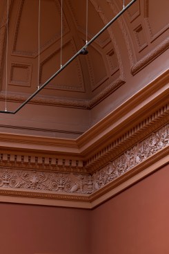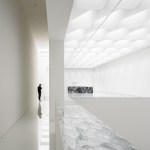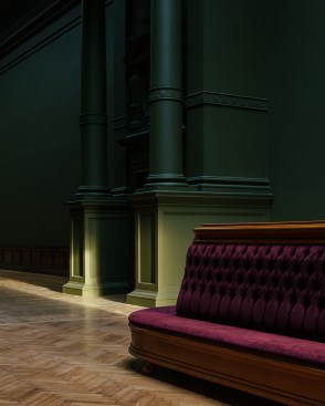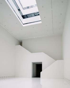 Built in the 19th century, Antwerp’s Royal Museum of Fine Arts was conceived as a ‘daylight museum’ by architects Winders and Van Dyck. During the 20th century, the building underwent many fundamental changes in the layout, modifying the original circulation route and the connection with the city. Our intervention aims to reverse these spatial changes by combining a thorough renovation of the historic museum with a contemporary extension completely concealed within the existing structure. A complete overhaul of the 19th-century building restores the intrinsic qualities of the space by reinstating original colours, materials and routing within the historic halls. Guests can walk through an enfilade of exhibition rooms tinted in dark pink, green and red; oak doors, tall columns and ceiling ornaments in plasterwork convey a feeling of ancient grandeur. Meanwhile, hidden in the heart of the old building, a new vertical museum arises as a completely autonomous entity built within the four original patios. With bright white exhibition halls, hidden rooms, long staircases, far-reaching sightlines and varying gradations of daylight, the new museum charts a route full of surprising vertical experiences. Wherever the new extension ‘cuts’ the museum’s solid mass, subtle marble inlays have been added, echoing the elegant 19th-century museum’s materiality. These contrasting yet dialoguing entities coexist as two different worlds in one building, sharing the ability to unveil themselves little by little. The experience is never predictable and always in balance, both routes are challenging and at the service of the art.