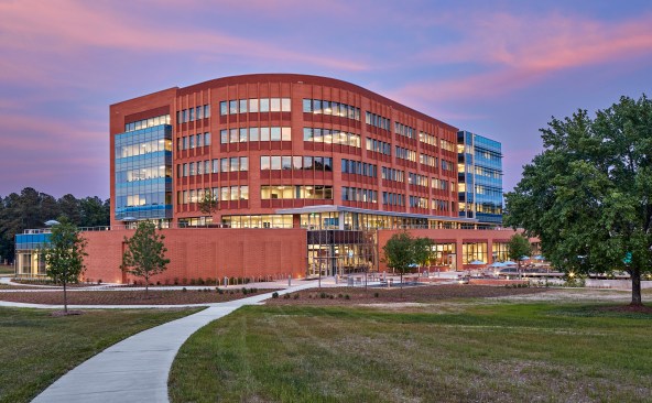 The mission of delivering the promise of science for international good inspired the design for RTI International’s new global headquarters on the institute’s main campus in Research Triangle Park. The goal of the building is two-fold—serve as the catalyst for unifying the campus’ diverse research ‘silos’ and create a more public face for RTI’s extensive accomplishments.