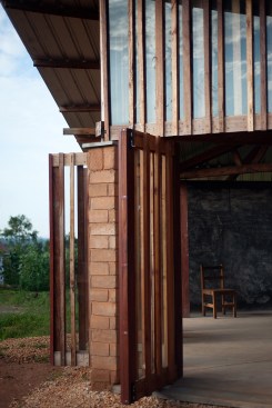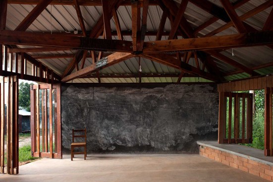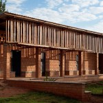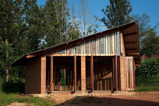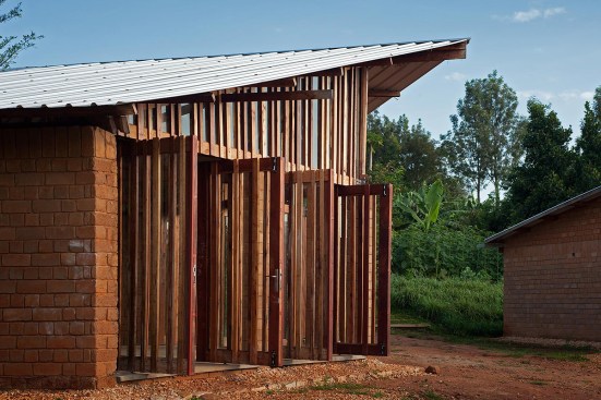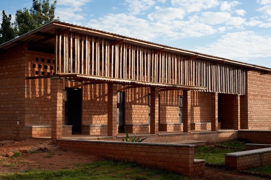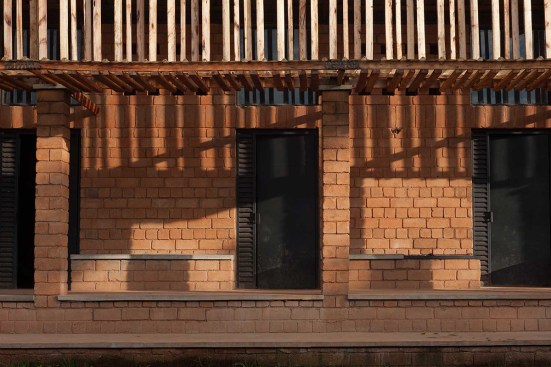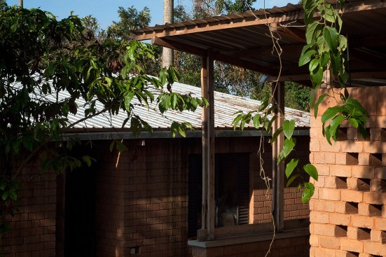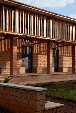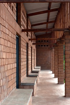 Given the school management’s keen interest in eco solutions the most local of construction technology was used: manually compressed stabilised soil blocks, largely made from earth sourced on site, and roofs and shading screens made of eucalyptus wood found in nearby plantations. All buildings have a decentralised rainwater harvesting system and kitchens with fitted fuel-efficient wood stoves. The project was built by local teams contracted on a labour basis and overseen by an in-house construction manager.