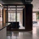 The Rue de la Gauchetière project restores a loft apartment in the Old Port of Montreal. Located in a hundred year-old heritage building called ‘Unity’, the design seeks to integrate nature and family living into a space that is decisively urban while celebrating its industrial origins. The design is manifested through a simple concept: a box inside the box. Two glazed wooden volumes are thoughtfully arranged within the concrete structure and programmed as bedrooms. They are used to organize the residential functions. Kitchen, living, dining, study, reading, and exercise areas take life on their periphery in a fluid and open plan. At once object and architecture, the bedroom is crafted as a bespoke kit of parts including everything from ceiling panels and mullions, to flooring and furniture. A series of automated blinds—both sheer and blackout—transform it from a private room to a floating lantern. Inspired by the original character of the building, the loft’s material palette is elemental and tactile; walnut plywood echoes the earth tones of the brick walls, warm greys pick up on the rough concrete, pervasive glass and mirrors emphasize the airiness of the space while the ample addition of greenery adds a dream-like, natural dimension.