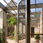 The architect and the owner, a landscape architect, worked in tandem from day one of this project—and it shows. Perched on the edge of a river gorge, the house and guesthouse align from south to north and are linked by a stone wall that serves as a spine. In between, overlapping interior and exterior spaces keep the lush setting front and center.