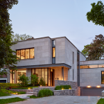 The new house, nestled comfortably between its neighbours, occupies a similar footprint to the residence formerly on the site. The exterior is clad in large slabs of Indiana Limestone with a base of split faced Ontario Algonquin stone that ties it materially into the vernacular of the neighbourhood, while standing out through careful contemporary detailing.