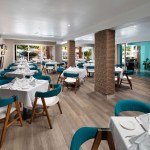 The project team stripped the building of extraneous decorative elements and reinforced its structural bones to both modernize the architecture and allow for the addition of two floors at this 120,000 square foot resort. The entrance sets an inviting tone for the property with a beautiful porte-cochere and cobblestone drive, leading to an entrance facade with Jatoba hardwood set against a crisp white facade to frame the entrance and create a path into the hotel’s interior.