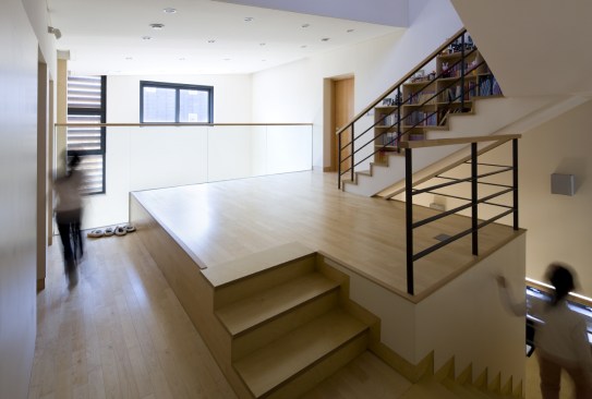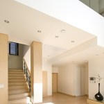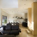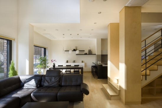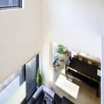As a result, the front door of the house was allocated near the main road away from the parking lot due to the idea that it would be better to expose the visitors. Furthermore, locating windows, yards and other detailed programs were developed within the same vein. Window opening were restrained besides the enormous south window. However, a three dimensional connection was created by designing a continuous void among the first and second floors and the interior windows was located throughout the house to provide natural sunlight. Along with the north louver windows, electrically operated windows were installed in consideration of sunlight and ventilation.