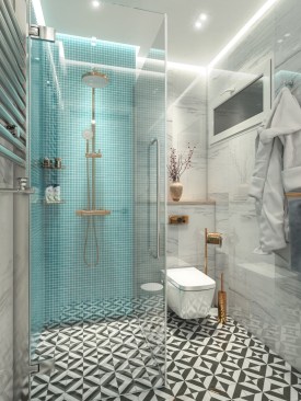 SA House is located Istanbul and has a nice view of Bosphorus. Pastel colors and some turquoise were used in the design. A few design touches were also made in the bathroom.