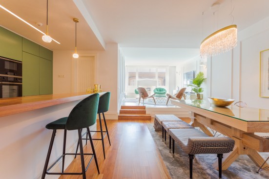 The framing for Avenida dos Aliados was one of the assumptions in the distribution of the layout, allowing the entry of light, making the house bright in all the main spaces.