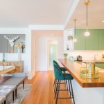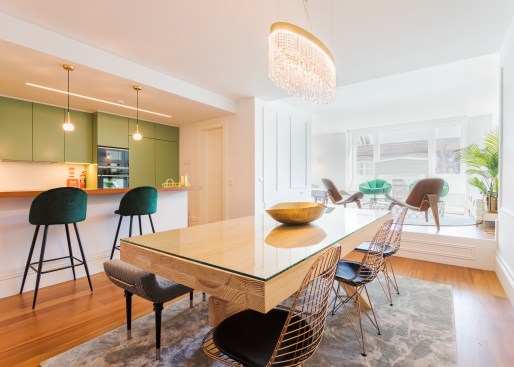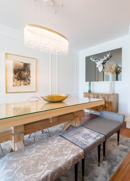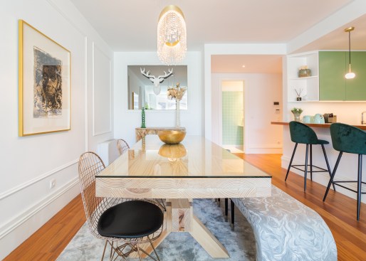 To remember the art deco of the building’s original height, plaster moldings were placed, creating an interesting contrast with the design pieces.