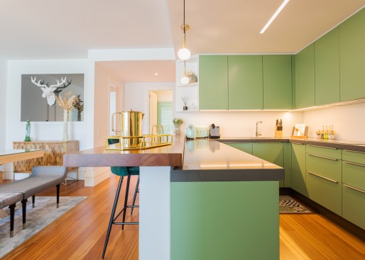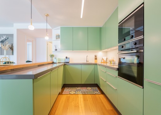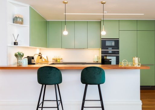 The aim was to achieve a visual balance with regard to materials and cores, which is why white, gray and light green mark the entire space.