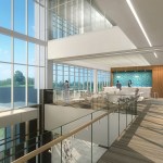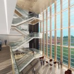 The new flagship building is designed to include sustainable building materials, responsible energy-efficient mechanical and lighting systems, and lifecycle cost- saving measures. Chilled beams and radiant heating, air-to-air energy recovery wheels and a geo-thermal well field will provide significant energy savings compared to the ASHRAE 90.1 baseline building. The lighting design will incorporate energy efficient luminaires and lamp sources, including LED’s and fluorescent lamps. Multi-level switching, dimming controls, and occupancy sensors will be combined with full-building automatic lighting control panels to reduce energy consumption. Additionally, daylight harvesting and light shelves will be incorporated in certain areas of the building to take full advantage of available natural light.