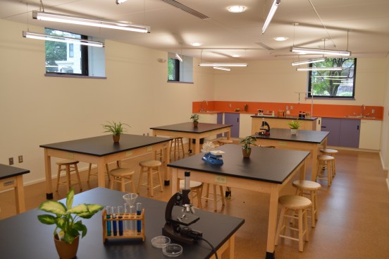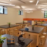 Evaluating long term goals in conjunction with budget constraints, the project’s first phase renovates the basement to create a new science laboratory. Future projects anticipate moving the laboratory equipment to the now vacant third floor to provide the science classroom. The first phase design focuses on providing flexibility so that the floor can be easily converted into a pre-school room when the lab is relocated.