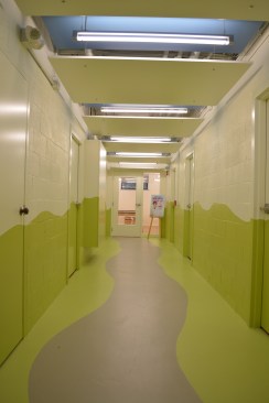 Capitalizing on the existing features of the building, the team added fresh finishes – cork flooring, colored panels and vision glass to create an exciting path to the new science classroom to show the exciting activities going on inside. The design also adds a small outdoor garden, melding nature into the classroom and presenting further opportunities visually and experientially to connect the students with nature and learning opportunities.