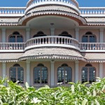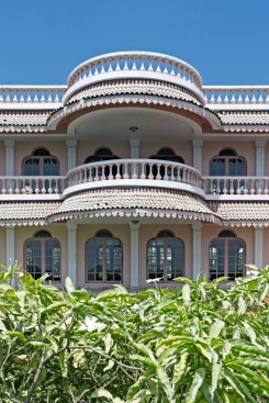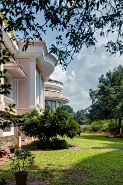 “The Sahyadri Guest House rises like a royal residence, with ruby red roofs and wide balconies overlooking its green environs”