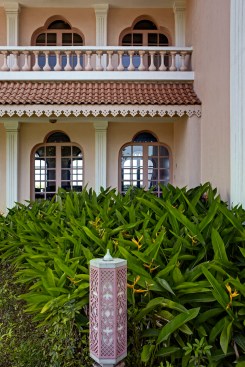 With sloping terracotta tiled roofs, decorative arches and windows and other such traditional architectural elements, the guest house is a nod to the historical Wada House of Maharashtra. These motifs play out in the shades and shadows of the built form to create a dynamic appeal. The driveway leading to the guest house culminates in a sweeping staircase and porch, while an entrance portal that takes cues from the woodwork and workmanship of Wadas, welcomes visitors. The entrance lobby, tastefully done with an intricate ceiling composed of carved wooden beams and a magnificent chandelier to create a lavish foyer for the surrounding conference and banquet rooms. Adjoining this are, sea-facing alcoves that serve as private sit outs for relaxation and rejuvenation. With its treasure trove of intricate details and artistic flourishes, the guest house creates a statement of honour.