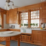 The addition, like the kitchen, has birch cabinets, windows, doors, casing, and floors. It also has wood-clad walls and a stenciled frieze, with a design appropriate to the style of the house, just below the ceiling.