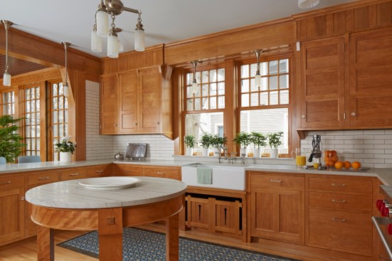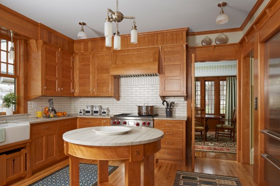 The challenge in this kitchen remodel was twofold: First, honor the wood-centric style of this 1907 Tudor Revival home while bringing light into the space; second, forge a connection to the outside.