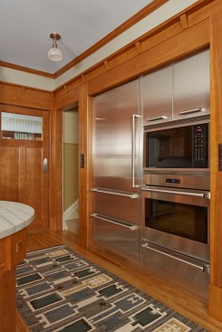 In tandem with the owners, we worked to create governing principles for the project that helped them—and us—determine the balance of period detailing, materials, and finishes with a fresher perspective and more youthful sensibility. How to manage the quantity of wood within the space became a challenge we met by using lighter values for the stone tops and tile, and creating a stainless steel appliance alcove. While rooted in tradition, the design marries historic precedence with a contemporary kitchen and modern sensibilities. The work is respectful of the original house because it honors the spirit of 1907, while ensuring the viability of the house for years to come.