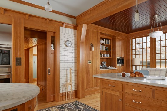 With access to the original plans of the home, the architects knew that the back part of the house was birch, which guided their decision to use that wood species in the design.