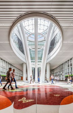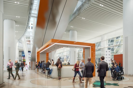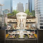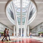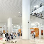 Within the Transit Center, the space is open and light-filled. Tall, structurally expressive skylights — “Light Columns” — bring sunshine deep into the building, creating a vibrant, inviting atmosphere. The largest Light Column forms the central element of the 36-meter tall (118-feet tall) Grand Hall, Transbay’s primary public space. Reaching from the park, down through the bus deck and Grand Hall, and all the way to the train platforms two stories below grade, this dramatic structure will provide light and long views to all areas of the Transit Center.