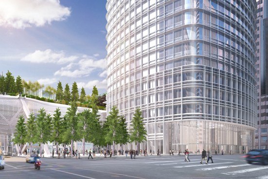 The new Transit Center will stretch for five blocks along Mission Street, one block south of the city’s Financial District. A gently undulating wall, floating above the street on angled steel columns, will be visible from afar, creating a graceful, luminous, and welcoming image. At street level, shops and cafes will draw visitors and energize the surrounding neighborhood, while high above, the trees and flowers of the rooftop park will invite people to visit for longer periods, transforming the Transit Center from a commuter hub to an urban destination.