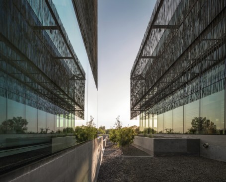 The program of the 93,000-square-foot building in the Sonoran Desert is distributed across two floors and organized around the landscape. It houses seven courtrooms that facilitate civil, criminal, juvenile, and appellate proceedings and the necessary office and administrative spaces to support the courtrooms.