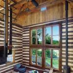 Foster’s crew meticulously installed layers of rigid foam insulation between the logs on each cabin, filling any remaining gaps with spray-in foam. The thick coat of exterior stucco covering the insulation is angled ever so slightly to catch rainwater and direct it away from the logs. The logs themselves contain naturally occurring cracks that can let in cold air, so Foster sealed and discreetly caulked these as well. Decisions about which cracks to fill happened on a log-by-log basis. “It’s not a science. It’s more of a value judgment,” Foster says.