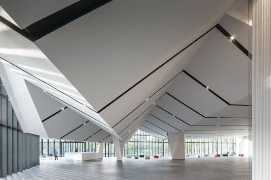 For the Samsung Model Home Gallery, Boston-based firm NADAAA created a 105,000-square-foot, high-design shell, with an aluminum-fin-clad volume to house the model apartments rising from a glazed base. “To me, the base is what’s successful because of what it does,” juror David Jameson said. “It’s a supergraphic for a house.”