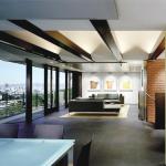 Taking advantage of the expansive vista to the north, the original plan loaded main-level working spaces along the building’s south side, which Mankins cleaned up with a more compact stair and kitchen. At the lower level, “much of the renovation was removing the things that were in the way of the view,” says Mankins, who converted a three-bedroom train wreck into a sleek master bedroom suite with sleeping, sitting, and office spaces, each with its own piece of the view.
