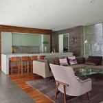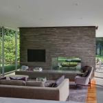 Mark DuBois’s work on this 1950s rancher consisted of recasting the landscape connection and pairing the quiet, closed home with new, open public space. He clad the existing structure, now a bedroom wing, in clear cedar and extended it into the large, lush backyard with a perpendicular glass living pavilion. The material palette of soft grays, greens, and silvers carries from inside to out: aluminum window systems, stone floors and patios, and zinc roof fascia. There’s warmth and texture here, too. In addition to the ipe-topped trellis and deck, the kitchen’s monolithic wood-block wall is handmade with strips of American walnut. Our jury applauded the effort, calling it “an amazing transformation, one that does nice things in a kind of plain way, and stays in the motif of the existing house.” —Cheryl Weber, LEED AP