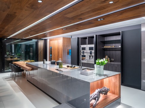 The kitchen, scullery & pantry, as well as main bedroom wardrobes were supplied and installed by M Square Lifestyle Necessities. The kitchen brand being Doca, was imported from Spain, and the wardrobes from Porro, Italy. Appliances were also supplied through M Square Lifestyle Necessities and features Gaggenau in the main kitchen.