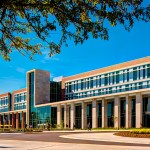 Inside the four-story facility are 50 classrooms with 2,435 instructional seats; two 200-seat auditoriums, an education library, a grants and research center, and office and clinical space for specific programs.