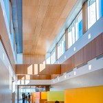Flexible elements are incorporated throughout the project, integrating opportunities for informal learning into the building circulation. Collaborative learning spaces are situated outside of every classroom and banquette seating featuring embedded technology is placed throughout. In addition, all corridors incorporate a playful notion of seating with both small and large configurations for group and individual study.