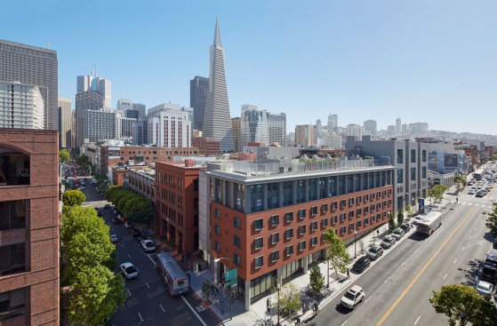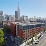 These 75 units for low-income families at Sansome and Broadway in San Francisco complete the repair of the former Embarcadero Freeway touchdown sites begun by our Broadway Family Apartments across the street. This block-long site is where two different historic building patterns meet—large historic warehouses to the east, and typical San Francisco fabric of small buildings stepping with the slopes on the other sides. Accordingly, the eastern wing of our complex is simple and loft-like, while the western quadrant of the site is vertically articulated and steps with the slope. Retail spaces animate the building corners. Common spaces include a multi-purpose room, supportive service offices and a large roof garden play area with stunning views of the bay.