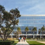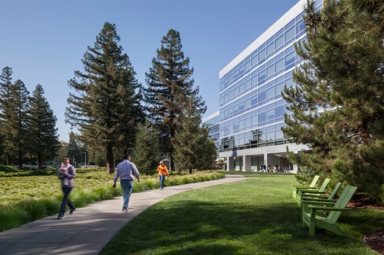 Buildings in the west campus are organized around a central dining pavilion flanked by recreational green spaces. Indigenous redwoods, carefully preserved throughout the campus, animate its southern edge and create an integrated buffer with adjacent mixed-use areas, while connecting the campus to the natural landscape of Northern California.