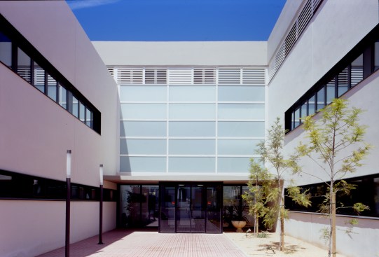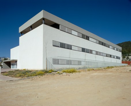 Located in a residential area undergoing development on the outskirts of the town, the design proposal was based on reducing the visual impact of the building within the context of the two-story houses surrounding it while at the same time establish the identity of the center as a public building. Consisting of a central volume with two lateral volumes, which are articulated by the geometry of the site, a double criteria was used to organize the functional organization: on the one hand, similar functions are grouped together in each of the three blocks and on the other hand, the different departments are distributed on specific levels according to their use. The differentiated entrances define the public character of the center with pedestrian access via a plaza leading to the double-height entry hall and the ambulances’ entrance is through a covered area on the other side. In response to the luminous quality typical of the architecture of Ibiza, the principal materials utilized are white stucco and glass.