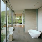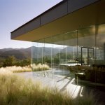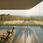 A unique structural glass wall is the only support for the cantilevered roof, the first time this has been done in North America. The sheer wall of glass dissolves the distinction between indoors and outdoors, opening the rooms out to the horizon and creating the ultimate glass house.
