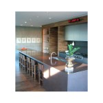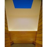 The materials palette of basalt, concrete, walnut and zinc form a simple, elegant backdrop for the collection of paintings, drawings, sculpture and video. The intense New Mexico sun is controlled and tempered by deep overhangs, north facing clerestories and frosted glass skylights. The overhangs and massive concrete walls keep the house cool in the summer, while solar gain falling on stone floors provides significant heating in the winter.