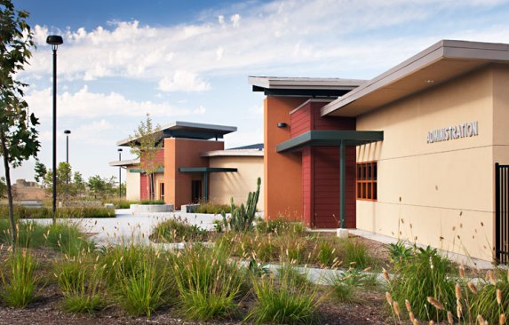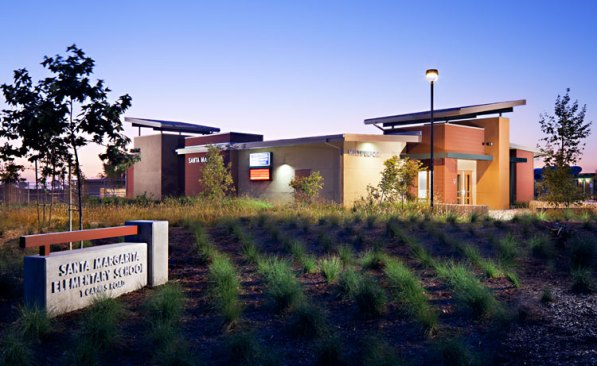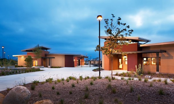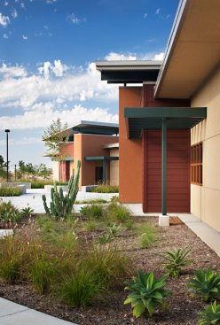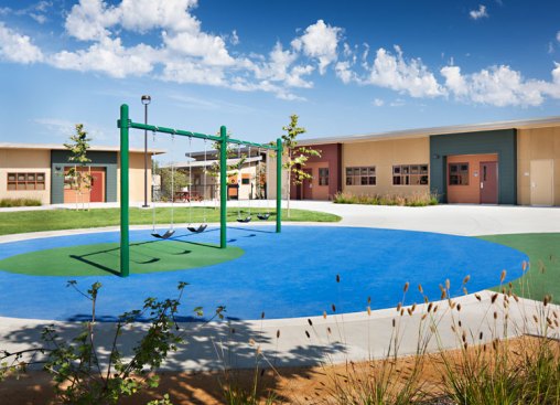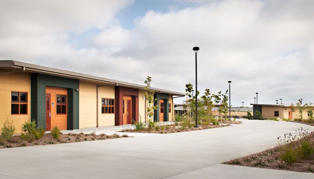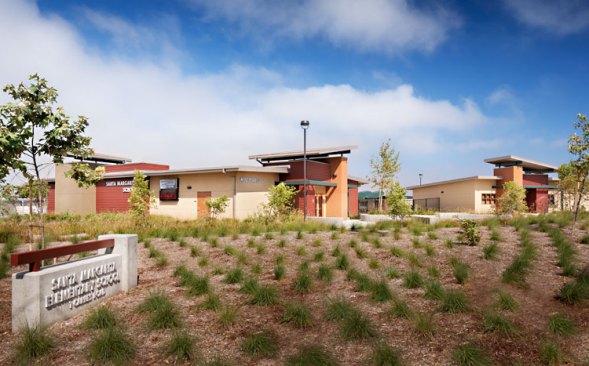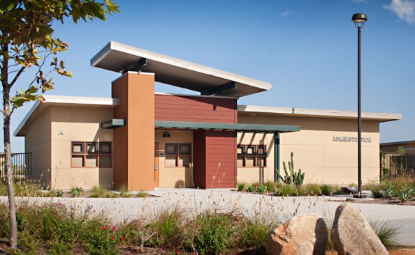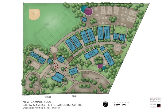 By removing upwards of 80% of the existing 50 year old outdated buildings at Santa Margarita Elementary School, AlphaStudio Design Group capitalized on this opportunity to restore the character and sense of place to this established campus on Camp Pendleton. The complete site demolition and reconfiguration of the campus allowed for a new central promenade connecting the administrative services to the classrooms, creating a striking view corridor through the site, thereby establishing a new identity for the campus. With a well defined and focused approach, modular building concepts were utilized for the classroom core in the design of this campus. A design strategy based on a standard 12’ x 40’ module allows for maximized efficiency in design. Two existing buildings, the Multi-Purpose and original Library, were fully remodeled with the Library being re-purposed into classrooms to meet programmatic design requirements. In order to create a sense of permanence, the Administration Building, New Library and Kindergarten wing were comprised of site built construction. Additionally, the modular classroom buildings were constructed on concrete foundations at grade level. Finally, we have made use of site built accessory elements, such as entry canopies, and an architectural vernacular to help define and create a relationship between the modular buildings and permanent construction.