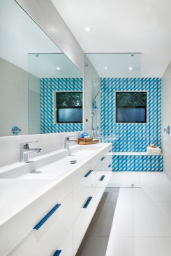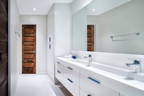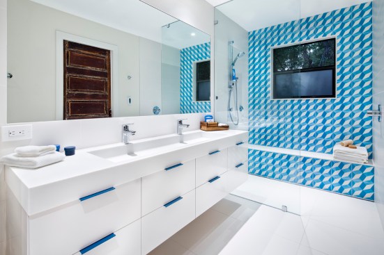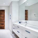 Located deep in one of south Austin's most vibrant neighborhoods, this home had the perfect location for a young professional. But the master bath was wonky. So they hired CG&S for a makeover. We replaced the tub and shower with a contemporary, minimal frameless shower enclosure with a nice Cle tile accent wall and bench. Two awkward sinks separated by a storage tower were replaced by a unified floating vanity with a trough sink formed out of solid surface material. White dominates the space punctuated by powder coated drawer pulls and the aforementioned accent tile. Simple, minimal, elegant. The large, 76" mirror sympathizes with these dynamics. The owner liked the original doors, so we kept them. They add a charming rustic counterpoint to the dominant stylistic regime. Radiant heating in the flooring provides a nice finishing touch.