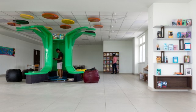 The layout of the main building is planned on the movement pattern for the kids, with the ground floor dedicated to the pre-primary and classes 1-3. A series of interconnected personal engagement zones such as the indoor play area and library encourage free movement of the younger kids, giving them ample opportunity to pick out their favourite corners in the building. The First-floor houses classes KG and 3-5th, along with the Computer lab, AV room, Social lab, and the Arts and Crafts room. The Second and Third floors are dedicated to the middle and the senior wing, respectively, with all the classrooms and allied activity areas such as the Library, Maths Lab, and the Science Labs. Each floor also has separate staff rooms for the teachers.