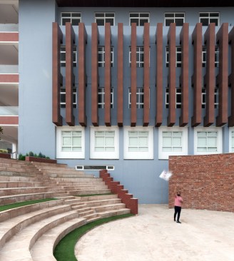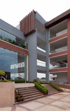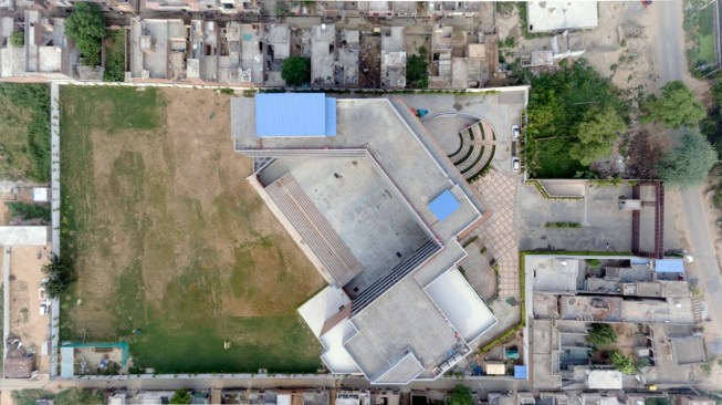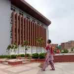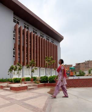 The school campus is located in Faridabad – an upcoming urban centre in the vicinity of Delhi, as a response to the increasing need for quality educational facilities in the neighbourhood. Situated amidst low-height residential settlements, the Saraswati School building stands out with its stoitness and structure, setting new design standards while maintaining its legacy of over three decades.