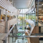 Sawyer Library illustrates how sustainable planning and design can deliver inspiring architecture that supports social interaction, foster a sense of community, and provide environmental stewardship. Sustainability in every sense of the word drove the design and provided the motivation to restore Stetson Hall to its former glory. Other sustainable features include optimized construction systems and natural lighting, which energizes the library’s significant footprint through two major atria and a four-story light reflector that distributes clerestory light into the heart of the building.